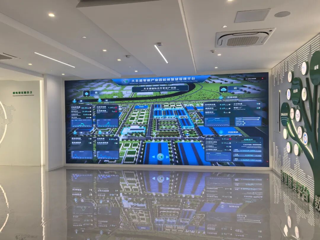 走进大丰港零碳产业园,首先映入眼帘的不是常见的厂房机械,而是一座以绿电追踪、管理与交易为核心的“碳谷大脑”。巨幅智慧大屏上,企业用电、绿电占比、碳排放数据实时跳动,一键即可生成碳盘查报告——能源可追溯、绿电可交易、碳排可监控,在这里成为现实。