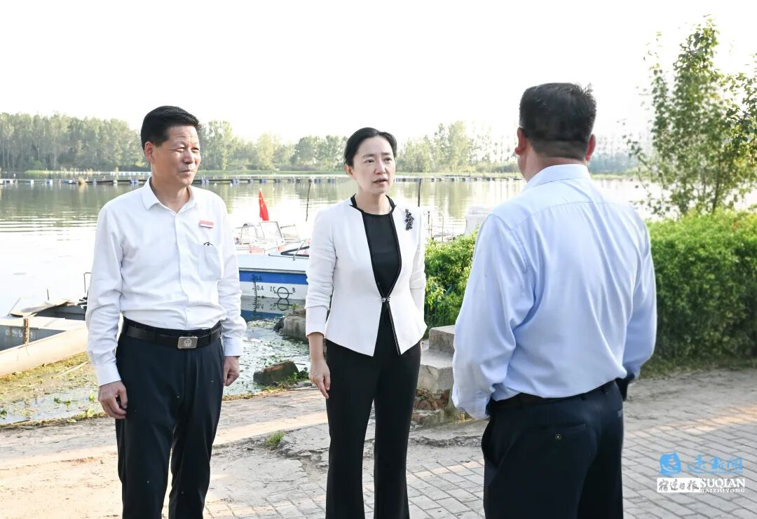 骆马湖是宿迁市重要的水源地之一,也是南水北调东线工程的重要调蓄湖泊。在骆马湖水源工程项目现场,盛蕾认真了解项目规划、建设进度等情况,并就生态修复等问题与项目负责人进行探讨。她指出,要把水源地水质安全摆在突出位置,坚持系统治理、科学施策,进一步加强湖底生态环境监测,全面摸清湖体水质、生态条件、生物种类等情况,切实筑牢水源地安全防线。