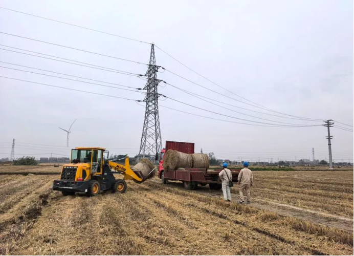 水稻丰收季,在扬州高邮市三垛镇春生村的一处收割完的稻田里,一捆捆打包好的圆柱形秸秆包被装载上车,开启了“变废为宝”的绿色旅程。