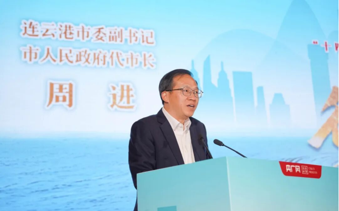周进在致辞中说,连云港地处我国万里海疆中部,海岸线兼具独特的战略区位优势,秀美的山海连云风光,以及深厚的历史文化底蕴。他介绍,这条海岸线上布局形成“一港四区”组合的东方大港,向西“三枢纽一体化”贯通亚欧。同时,连云港正崛起万亿级绿色石化产业基地和“中华药港”,全国最大的单体海上光伏项目、高效低碳燃气轮机试验装置、大型清洁能源基地等在此集聚,推动零碳城市建设。此外,蓝湾百里串联起最美风景线,连岛音乐节等文旅活动点燃城市激情。未来,连云港将全面拥抱大海,大力发展海洋科技和海洋产业集群,建设高度开放的现代化海洋城市。把发展边界拓展到低空和深海,加快发展新兴产业和未来产业。全面实施“人工智能+”行动,驱动着产业智能升级和城市智慧生长。