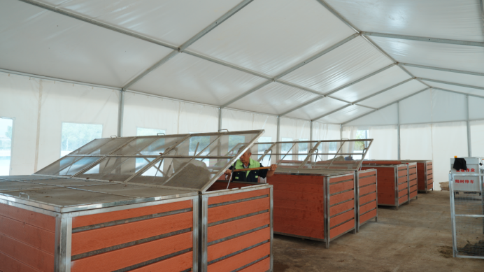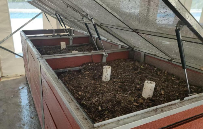 项目通过改造原有建筑实现高效空间利用,由机场集团联合国合基地孵化生态链企业言蹊生态共同打造,创新性采用两类生物质废弃物就地协同处置技术。项目于2025年6月起实现每日稳定处置1吨垃圾,仅需45天,厨余与绿化垃圾即可转化为符合国家标准的有机肥,用于机场绿化养护,构建起了“废弃物—有机肥—植物”的完整生态闭环,既降低垃圾外运成本,也为“双碳”目标落地提供坚实支撑。