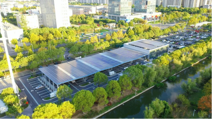更值得点赞的是它的环保效益:该充电站全年可利用近40万千瓦时的太阳能发电量,实现年减二氧化碳330吨,相当于减少165辆燃油车全年行驶的碳排放量,或种植1.8万棵成年树木的固碳量。