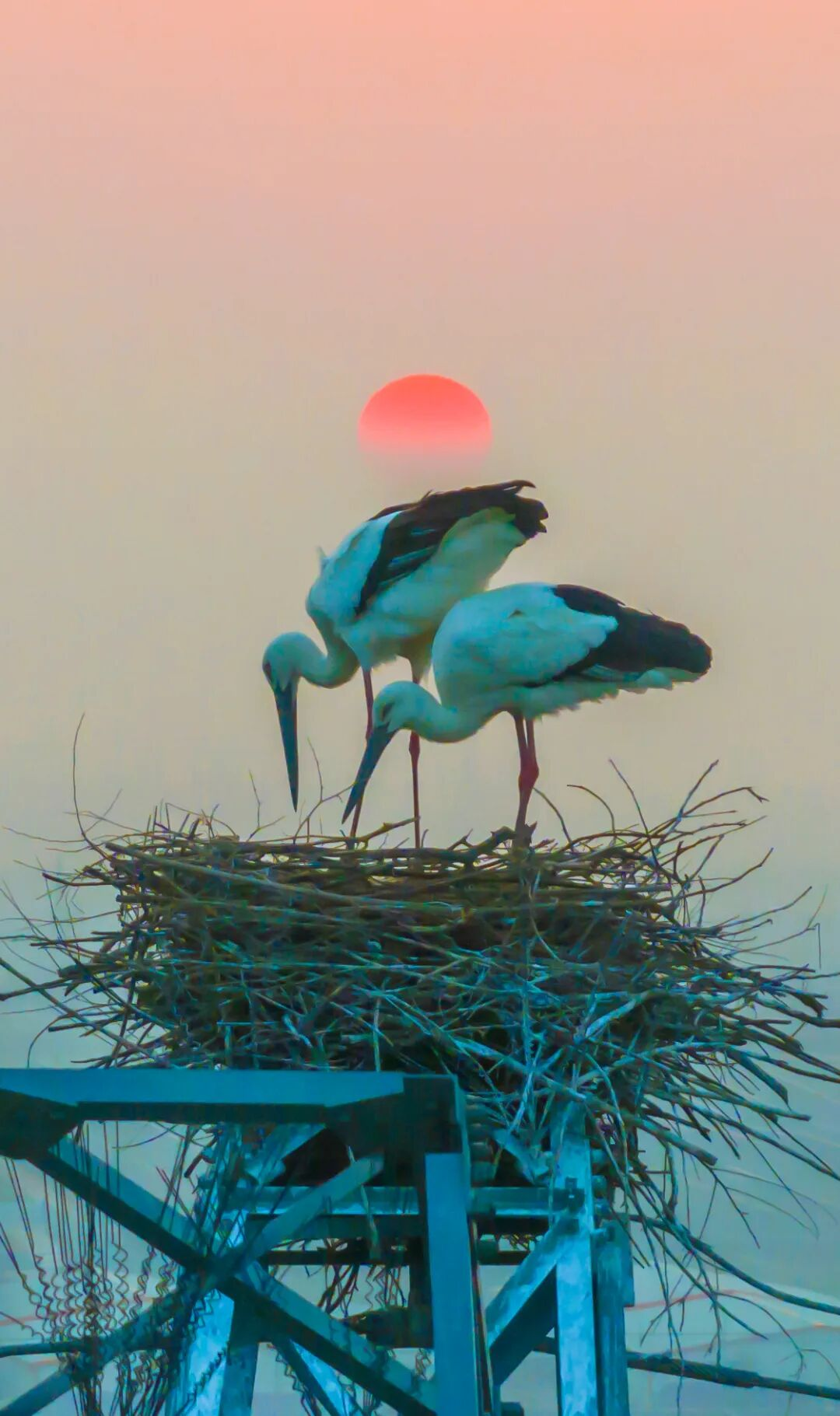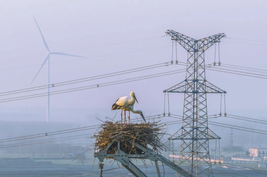 “你看那几只小的,今年刚出生,已经是第四代了!”王瑞语气里满是自豪。他口中的“第四代”,是两年前在此筑巢安家的那对东方白鹳的曾孙辈。从最初的一对“稀客”,到如今拖家带口、四代同堂的“常住居民”,这群国家一级保护动物,用翅膀为泗洪生态环境投下“信任票”。
