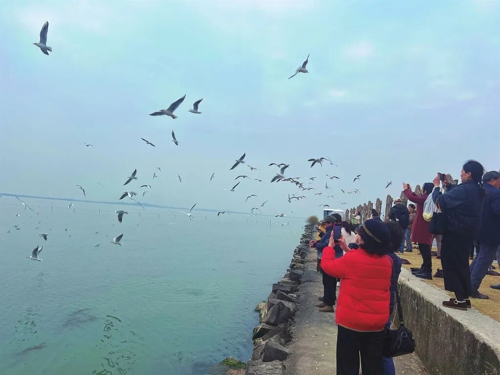 冬日,随着西伯利亚远道而来的红嘴鸥如约而至,苏州太湖沿线迎来一波波观赏人潮。