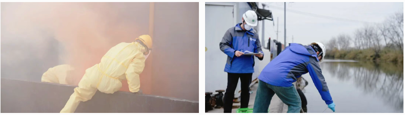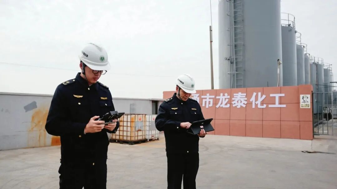 同时,海门生态环境局的应急人员也同步展开行动。无人机升空进行拍摄取证,大气走航监测车对下风向的酸雾浓度进行预警监测。执法人员携带水质快速检测仪和pH计,在厂界、雨水管网窨井、周边河道及下游敏感点布设监测点位,实时回传数据:“pH值异常,立即封堵雨水排放口!”