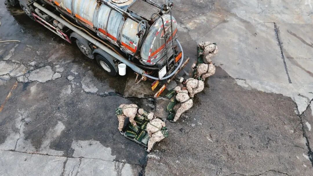 在泄漏控制与清理阶段,应急装备的实战效能得到了有效验证。消防堵漏工具组成功封堵了罐体泄漏点,应急泵将残余盐酸安全转移;地面残留的酸液经过石灰水中和及吸附处理。整个流程严格遵循“控源—围堵—中和—收集—清运”的闭环管理模式,充分展现了危化品泄漏处置的专业水平。