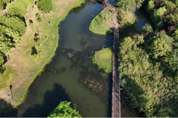 过去,水八仙区域因高度集约化农业生产,引发水体重度富营养化、河道外来物种入侵堵塞、生态功能退化等问题。该区域约32970平方米南北两侧湿地,水体透明度仅0.18m,总磷超标为劣V类,底泥黑臭淤积,沉水植物缺失,生态系统严重失衡,亟须系统性生态修复。
