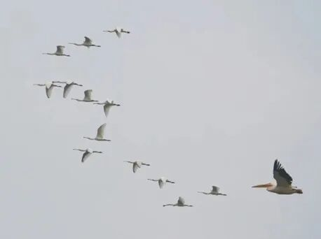 这只白鹈鹕最初被发现时,正跟随在国家二级保护动物白琵鹭种群后方活动。“起初并未认出是白鹈鹕,只留意到队尾这只鸟类外形特殊,与白琵鹭差异明显,随即展开持续观测。”老山森林生物多样性观测站工作人员说,第一次观测到这只白鹈鹕是在3月25日,之后每天早上六时至七时左右,这只白鹈鹕都会在附近鱼塘捕食。