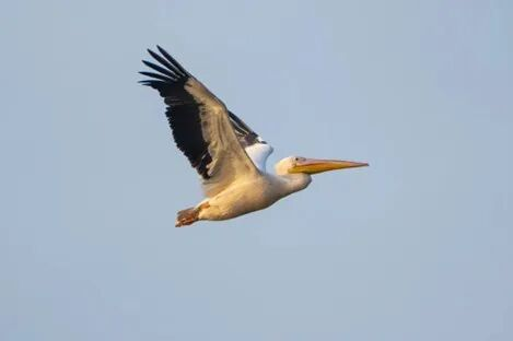白鹈鹕是鹈鹕科的大型水禽,与卷羽鹈鹕相比,白鹈鹕体型稍小,体羽白中透着粉色,喉囊黄色,脸部裸皮粉红色,脚粉红色,显得更加优雅。目前,国内野生白鹈鹕数量十分稀少,2021年被列为国家一级保护野生动物。白鹈鹕主要分布于非洲、欧亚大陆南部等地,在我国东南沿海及周边地区仅为偶见,多为迁徙途中的迷鸟或旅鸟,此次现身滁河湿地江北新区段实属罕见。