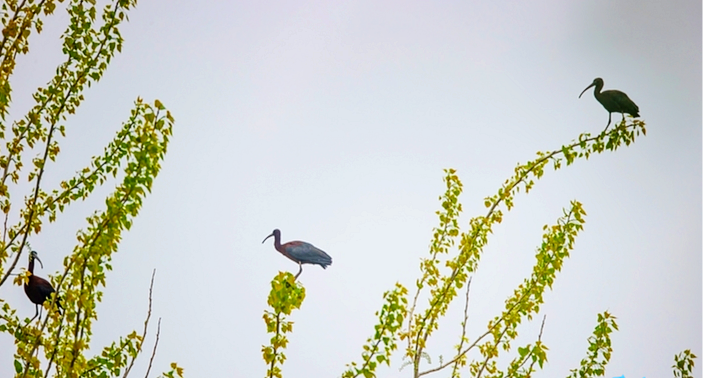近日,江苏泗洪洪泽湖湿地国家级自然保护区工作人员在日常巡护监测过程中,首次同时记录到3只国家一级保护野生动物——彩鹮。