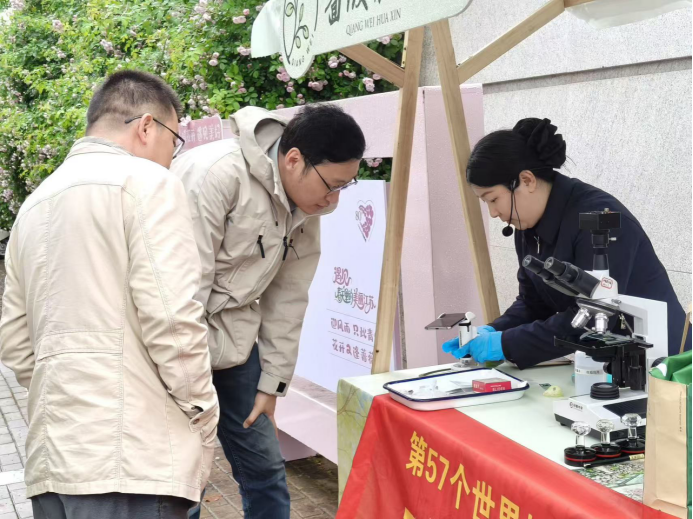 春风拂面,蔷薇盛放。活动现场设置品种辨识、微观探秘、互动体验、花墙留影四个板块,让科普“活起来”、让生态“看得见”。大家通过知识拼板、识图互动,轻松分辨蔷薇、玫瑰等品种,在趣味游戏中掌握界门纲目科属种植物分类知识;借助电子显微镜,近距离观察蔷薇花粉、花瓣与叶片结构。现场还开设合影打卡、明信片代寄服务,大家在浪漫花墙前定格美好,用一纸明信片传递绿色心愿。