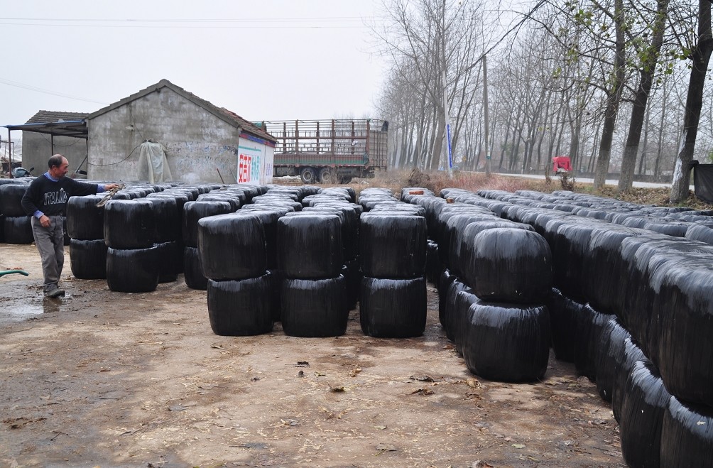 厂里的王经理介绍,这样经包装的发酵秸秆,能存放两三年,主要用来做饲料,喂牛羊。