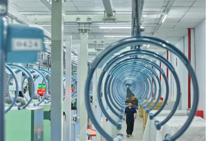 江苏大生集团有限公司前身系近代状元实业家张謇于1895年创办的大生纱厂。作为跨越三个世纪的中国纺织行业“常青藤”,大生集团一直致力于推动绿色制造和智能化生产线建设。2022年,该集团建成“智慧纺纱工厂”,成为全国纺织行业较早运用5G数据传输技术和智能管理云平台的工厂。