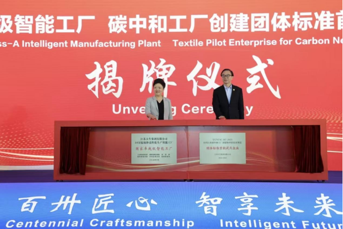 活动上,张彤、周勇为“国家卓越级智能工厂”和“纺织行业碳中和工厂创建和评价技术规范团体标准首批试点企业”揭牌。