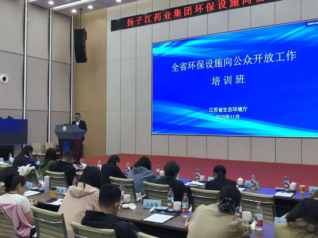 为丰富培训内容,培训班代表走入扬子江药业集团厂区,在企业环保主题宣教馆、污水处理站、危废库实地了解环保设施运维情况并进行交流。