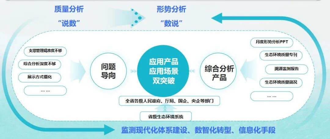 近年来,全省生态环境质量综合分析工作顺应管理需求,不断摸索转型,实现应用产品和场景“双突破”,回应管理要求,实现技术型报告向管理型报告转变;主动作为,综合分析产品服务管理效能逐步提升,推动形成问题交办闭环工作机制、建立污染溯源监测工作机制,并推动监测技术和科研水平共同提升。