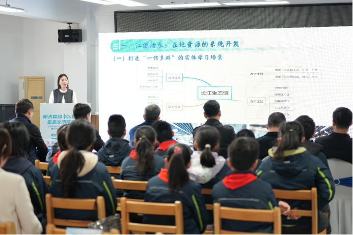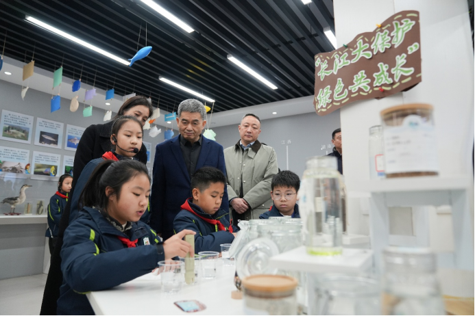 活动在新北区圩塘中心小学的长江生态文明教育特色成果展中拉开序幕。作为“江苏省国际生态学校示范校”和“全省首批、全市唯一”获此殊荣的学校,该校依托长江岸线资源,构建了“知长江—护长江—创未来”三位一体的教育体系。现场,与会嘉宾参观了长江生态馆、学生生态作品展及“一馆多群”实体学习场景,亲身感受学校如何将生态理念融入课程、活动与校园文化。