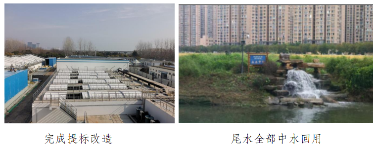 (二)整治措施:一是实施提标改造。2023年8月,对原执行一级A排放标准的6万吨/日处理工艺进行提标改造,将CAST工艺改造为SBR工艺,新增反硝化深床滤池深度处理单元,配套建设全过程密闭除臭系统,尾水提升至地表水准IV类标准。二是进行中水回用。新建专用尾水排放管网与标准化排污口,将尾水全部接入浦口区中水管网,用于河道补水等综合利用,实现资源化利用。三是封堵原排污口。提标改造工程完工后,同步对长江干流的排污口进行永久封堵,工程于2025年6月完工。