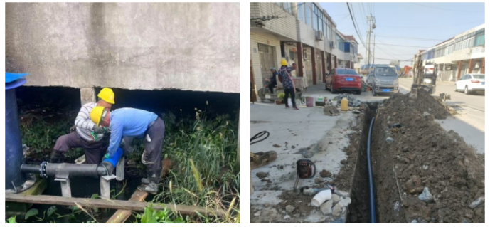 (二)整治措施:邳州生态环境局会同设计单位、第三方技术机构开展联合会商,反复论证后调整施工方案,采用“负压管道+重力管道”相结合的治理模式,负压管道具有占地小、埋管深度浅、施工灵活的特点,适配沿河狭窄空间;重力管道负责终端污水输送,实现“收集—输送—处理”全链路贯通。同步配套建设40m3/d后马庄村污水处理站,22个散排口污水经收集后统一接入处理。