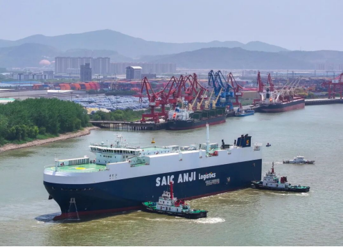 南京港滚装外贸航线首航。来源:江苏省港口集团