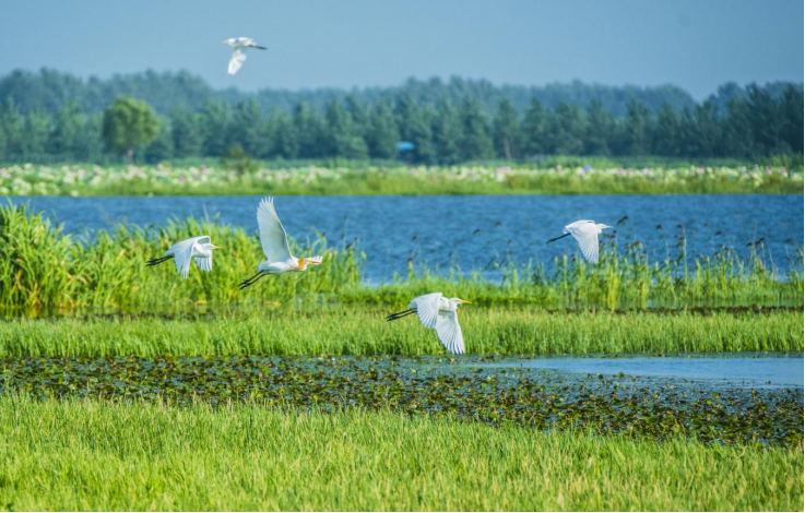 部分河湖曾因过度开发而“生病”,但随着系统性的生态修复,伤痕正蜕变为美景。近年来,宿迁环境监测中心着力开展已建成生态修复工程效果评估,通过精准评估,用科学守护绿水青山,用数据见证生态复兴。其中,泗洪成子湖5206公顷湿地重焕生机,消失多年的豹猫悄然回归;洪泽湖的修复实践入选国家级案例,骆马湖退捕后迎来万鸥翔集……宿城朱海的蜕变尤为动人,朱海∙牛角淹水环境修复项目入选“山水工程”全国典型案例——昔日212个零散鱼塘转变为4050亩碧波与150亩绿岛,生态效益与经济效益在此同频共振,带动1500余人就业,村集体年增收超400万元,生动诠释着“绿水青山就是金山银山”的宿迁实践。