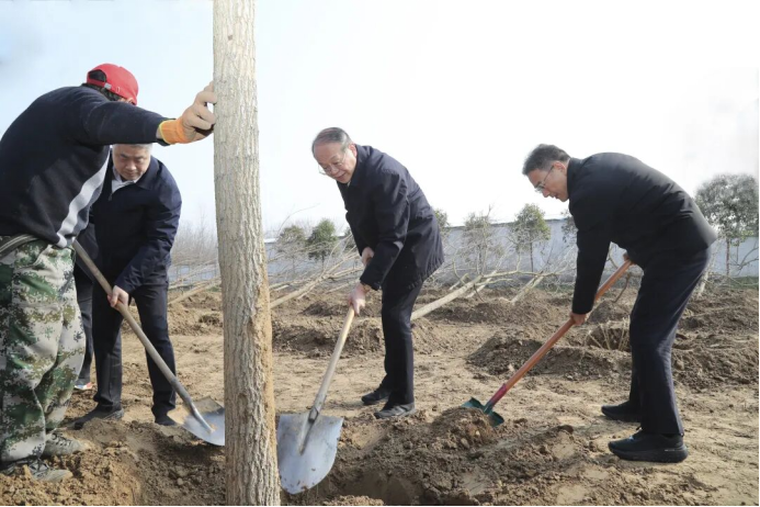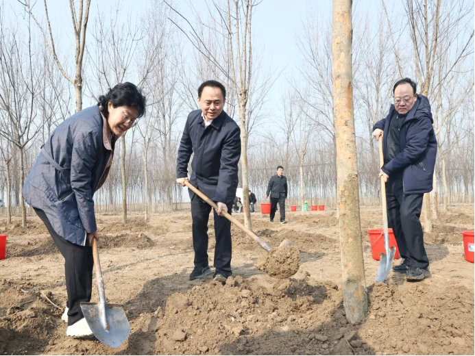 3月10日,徐州市委书记宋乐伟,徐州市委副书记、市长沈峻峰,徐州市人大常委会主任王安顺,徐州市政协主席、市委副书记、政法委书记韩冬梅等市四套班子领导来到铜山区张集林场,与广大干部群众一起参加义务植树活动,以实际行动践行习近平生态文明思想,带动徐州市上下持续开展造林绿化,共同绘就美丽徐州建设新画卷。