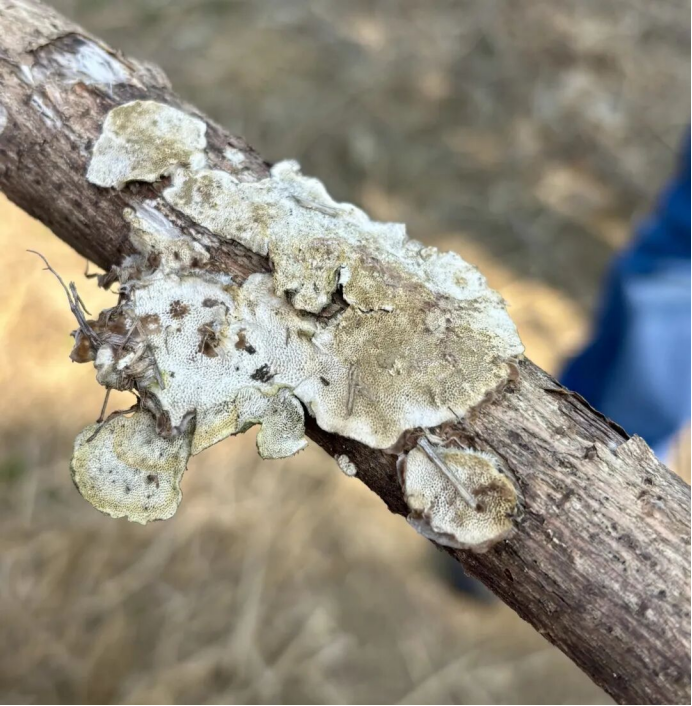 当孩子们沉浸在微观世界时,老师从一旁取出了刚刚在湿地捡到的平菇、裂褶菌、薄孔菌。“刚才看的是你们自己养的菌宝宝,现在来认识下这些‘大人’。”孩子们围拢过来,好奇地打量着形态各异的蘑菇。